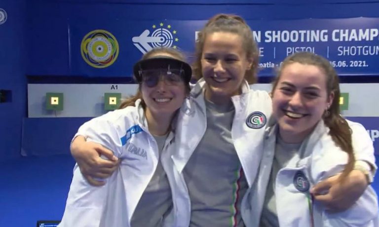 Brunella Aria, Margherita Brigida Veccaro e Alessandra Fait, 17 enne di Rovereto figlia del 4 volte olimpico Vigilio Fait, ieri sera hanno vinto la medaglia d’oro ai Campionati europei di tiro a segno a Osijek, in Croazia. Nella specialità di pistola ad aria compressa juniores donne le ragazze italiane hanno sbaragliato ilcampo battendo la Tuchia nella finale 16 a 12. Si tratta di un grande riconoscimento per il duro lavoro svolto da queste giovani ragazze e una grande soddisfazione per l’ottimo risultato raggiunto. Gli amici del Tiro a Segno di Rovereto aspettano la giovane Alessandra Fait per festeggiare questo bellissimo traguardo. Grande soddisfazione anche da parte del papà, Vigilio Fait, che ha partecipato alle Olimpiadi di Atlanta 1996, Sidney 2000, Atene 2004 e Pechino 2008) nella specialità del tiro a segno.